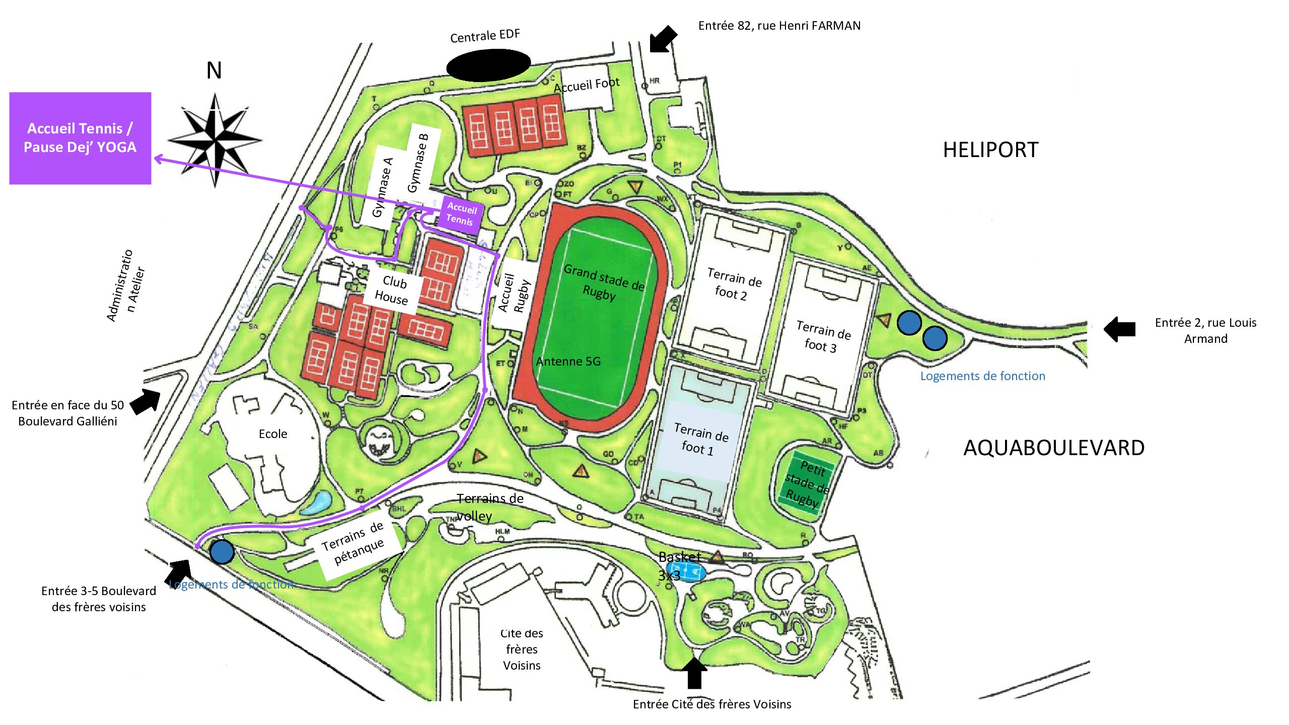 Le centre sportif Charles Rigoulot, situé au cœur du 15ᵉ arrondissement, est un équipement urbain moderne et multifonction. Il offre une combinaison intelligente de terrains extérieurs (tennis, football, boules), de salles couvertes (gymnases, salle d’arts martiaux) et une accessibilité excellente via métro, tram et bus. Le centre est un lieu parfait pour organiser une Pause Déj Sportive dynamique et paisible, avec des espaces couverts adaptés aux séances de yoga.